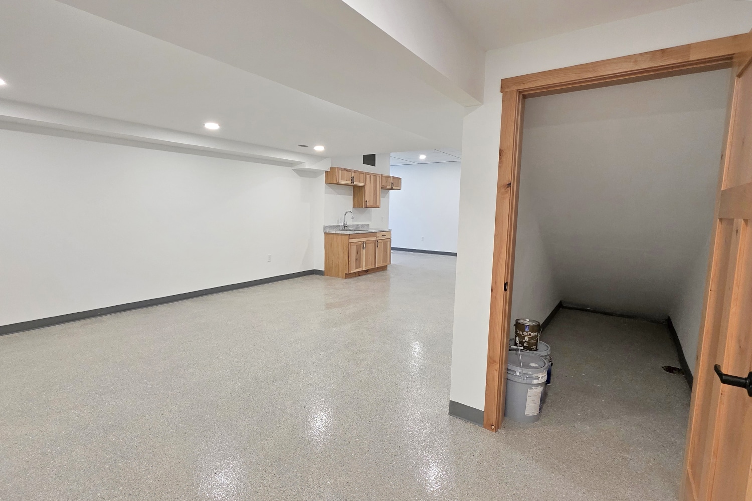 The suite also includes a kitchenette, full bathroom with walk in shower, and storage space under the stairs. A private alley entrance offers convenient access with some parking located directly in front of the suite.
