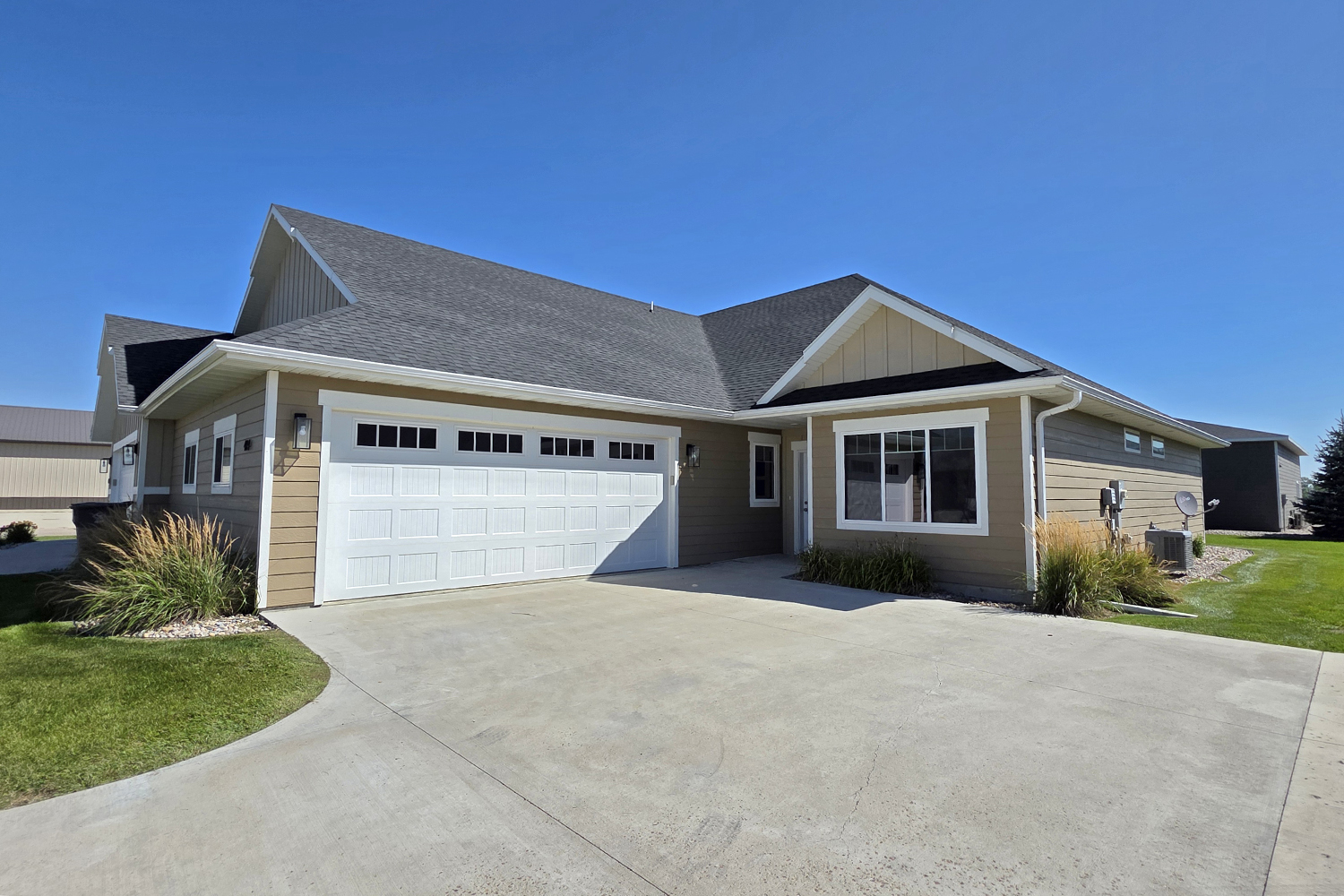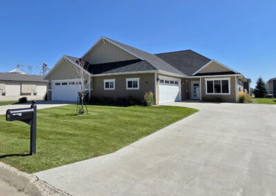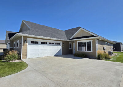 This gorgeous 3 bedroom, 2 bathroom, single level home offers an open floorplan with a beautiful kitchen showcasing custom cabinets, quartz countertops, corner pantry, island with sink and dishwasher, fridge including ice and water and a gas stove. Off the living and dining area are two patio doors leading out to a sizeable patio and backyard, with a fence along the North side of the property for your privacy. The large primary suite includes a walk- in closet, double vanity, separate water closet and walk-in shower. To top it off, the home includes a finished, heated, attached double garage.