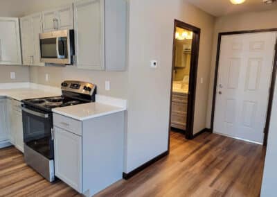 Studio apartment includes stove/oven, fridge, dishwasher, microwave, laundry, central air, off-street parking, and lawn and snow care provided.