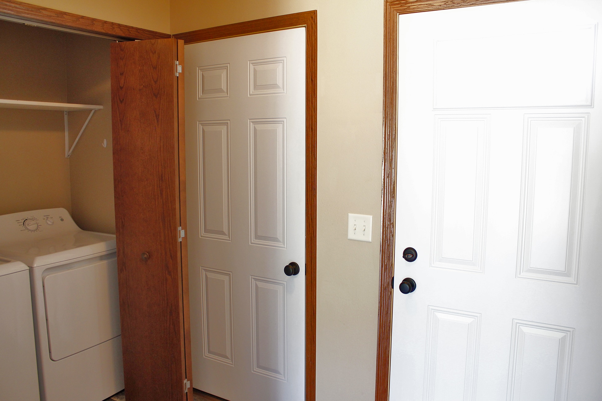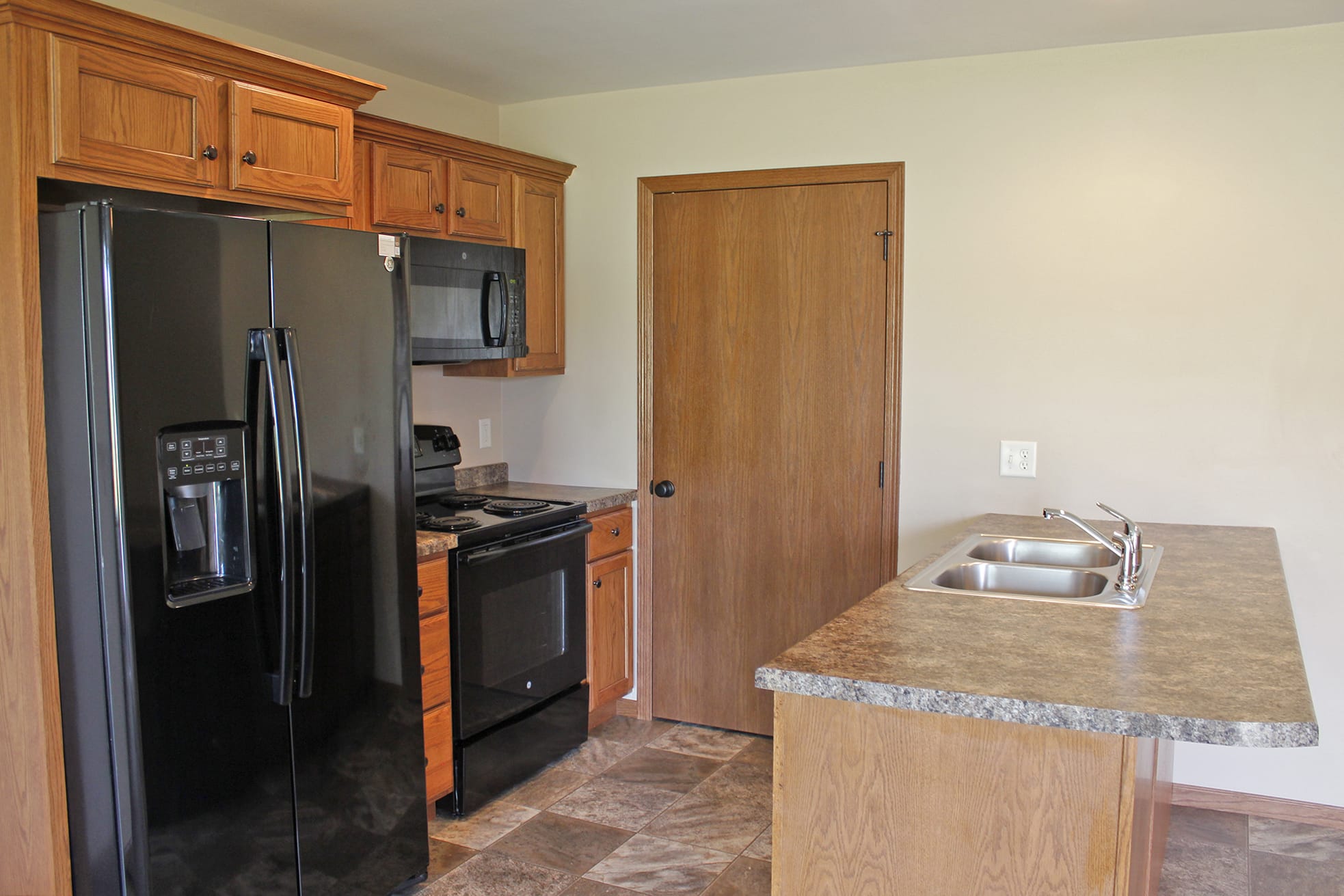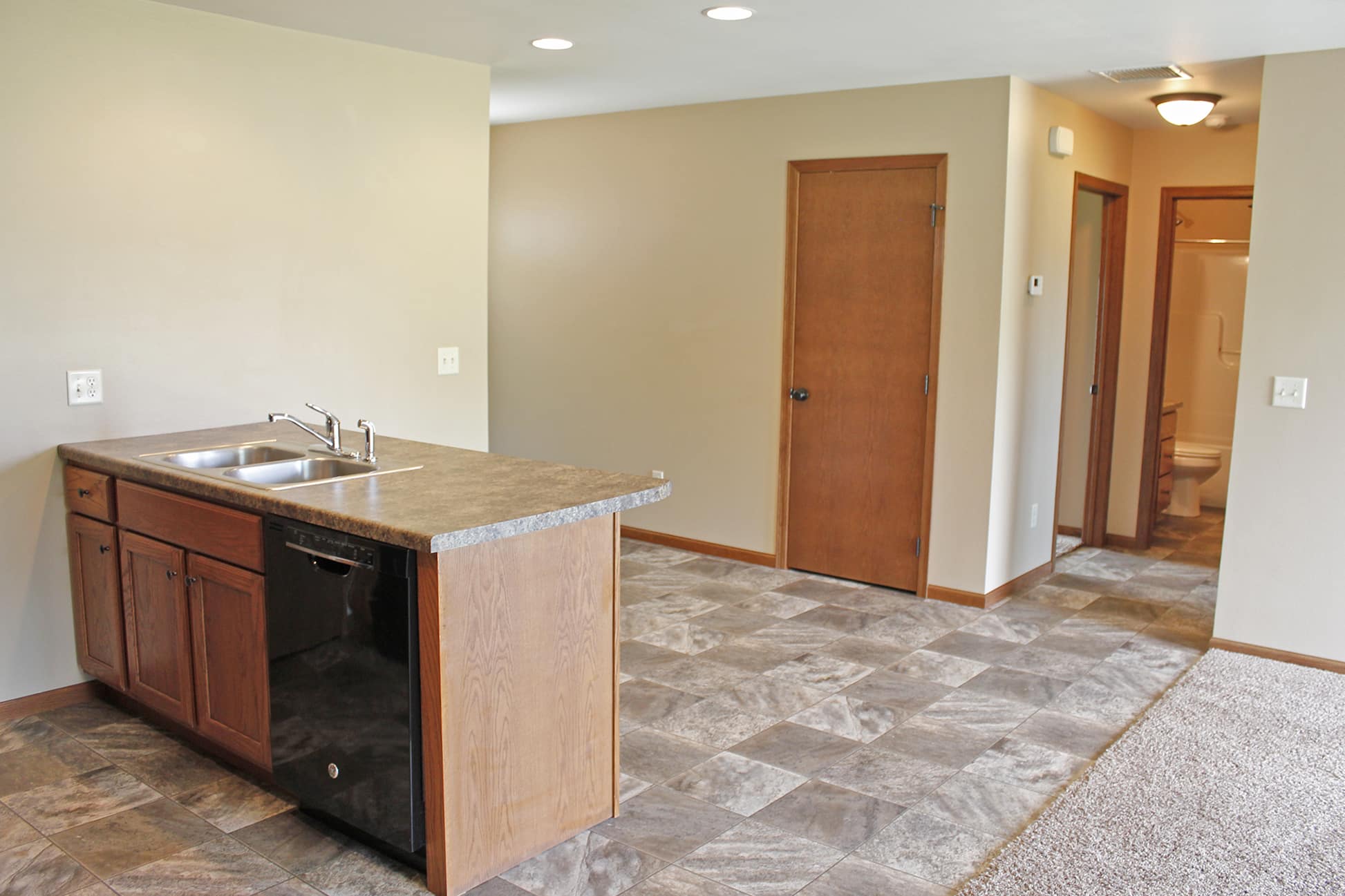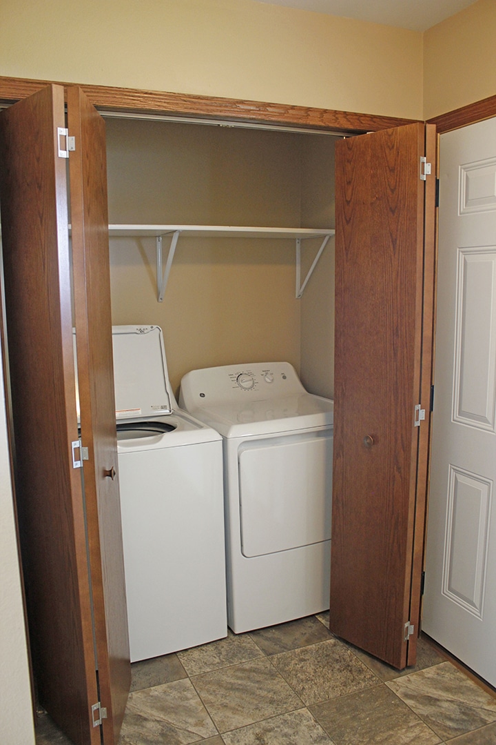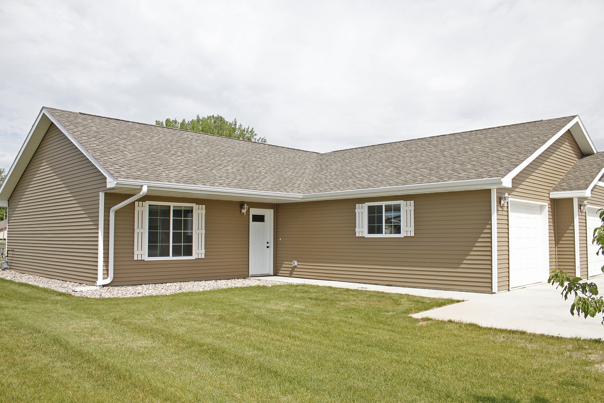 2 bedroom 1 bath single story townhouse located in Volga, SD. Includes Dishwasher, microwave, central air, laundry in-unit, and single attached garage.