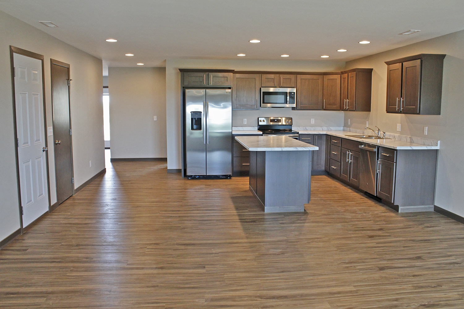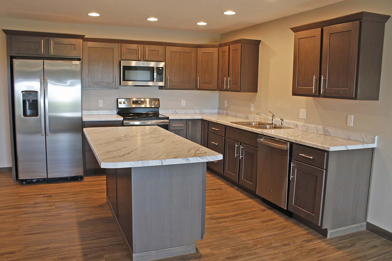 Appliances: Stove, refrigerator, dishwasher, and microwave